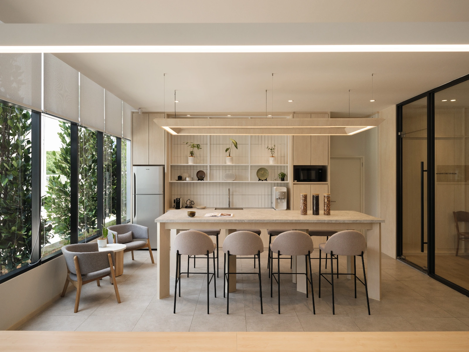 By leveraging openness, calibrated visual connectivity, and a material palette that enhances natural light, the environment transitions away from the conventional industrial office typology. Instead, it cultivates a relaxed and uplifting atmosphere that encourages creativity and well-being. In doing so, the design intentionally dissolves the traditional boundaries between work and leisure, allowing employees to inhabit a space where functionality, enjoyment, and spatial clarity coexist seamlessly.